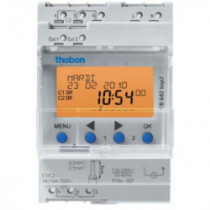 Interrupteur horaire digital modulaire. fixation sur rail DIN, 3 Modules. Programme annuel. Tension 230V. 2 contacts 16A. 800 pas de programme. 2 entrées externes pour dérogation. Radio synchronisable