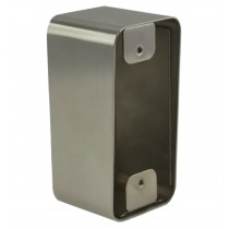 Boîtier acier inox, 42 x 87 x 38/42 mm pour plaque 39,5 x 84,5 mm, livré avec les chevilles et les vis de fixation pour le boîtier, les vis antivandales et les outils de montage pour la plaque