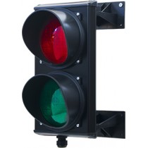 Feux de signalisation bicolore ROUGE-VERT, alimentation 230Vac (ampoules 70W/230Vac culot E27), diamètre lentilles 124mm, dimensions 410x180x290mm , livré avec fixations pour pose murale SAILLIE
