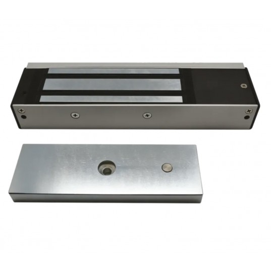 Ventouse électromagnétique en applique, 1200 lbs (série 550 kg), 12 ou 24V DC, à rupture de courant, éjecteur anti-rémanence intégré à la contreplaque, NF S 61-937