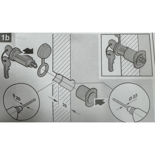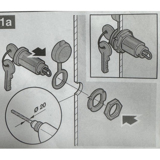 Serrure de déverouillage pour porte de garage sectionnelle , perçage à 20mm , s adapte sur des portes d épaisseur 2mm à 42 mm