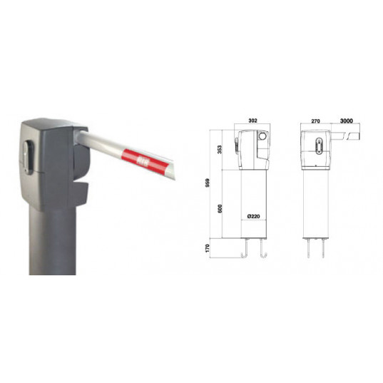 Barrière automatique corps aluminium et acier avec système détection d'obstacle Ralentissement en ouverture et fermeture Comprend le fût, la centrale électronique, la plaque à enterrer, la lisse télescopique de 4m et les adhésifs Installation simplifiée sans réglage des ressorts