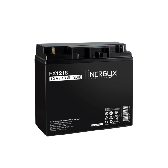 Batterie rechargeable VRLA INERGYX, 12V / 18 Ah - Bac FR UL94 V-0 - 181 x 77 x 167 mm - Bornes Ø6 mm pour vis et boulon