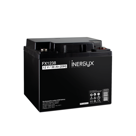 Batterie rechargeable VRLA INERGYX, 12V / 38 Ah - Bac FR UL94 V-0 - 197 x 166 x 174 mm - Insert fileté M6