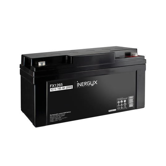 Batterie rechargeable VRLA INERGYX, 12V / 65 Ah - Bac FR UL94 V-0 - 350 x 167 x 178 mm - Insert fileté M6
