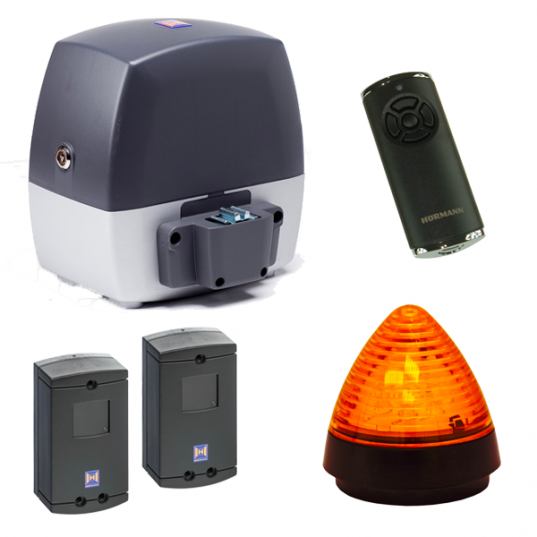 Motorisation pour portail coulissant jusqu'à 300 Kg et autoportant jusqu'à 250 Kg. Largeur de portail max 6000 mm. 20 cycles/jour ou 5 cycles/h. Force de 800 N. Vitesse d'ouverture 22cm/s. Le moteur permet de verrouiller fermement le portail et possède une fonction de détection d'obstacle. Commande par impulsion avec démarrages et arrêts progressifs. Ouverture piéton programmable. Possibilité de raccorder une batterie en cas de panne de courant (en option non incluse). Livré avec 1 télécommande, Cellules et feu de signalisation. (Clavier à code et batterie en option non incluse) Art 4511321 et 437989