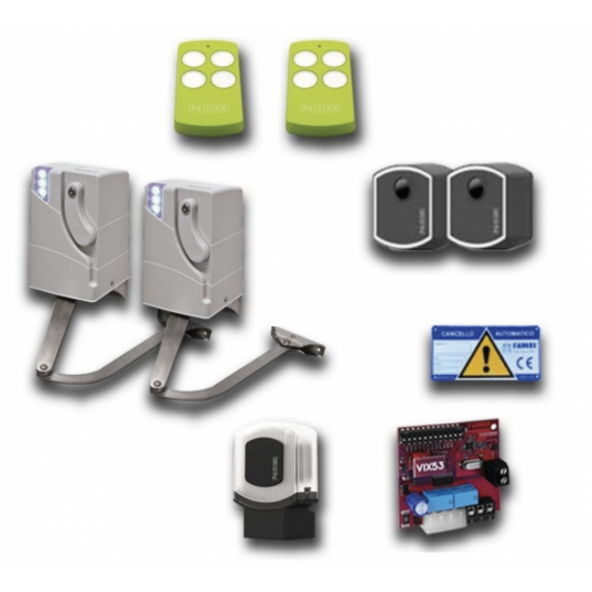 Kit motoréducteurs 24V à bras ARTICULES FADINI BART350, pour portails double battants PIVOTANTS, dimensions du vantailmaximum L 2.3m, poids 300Kg, radio 868MHz VIX53, SANS commutateur à clé, livré avec 2 émetteurs VIX53 F5313GL