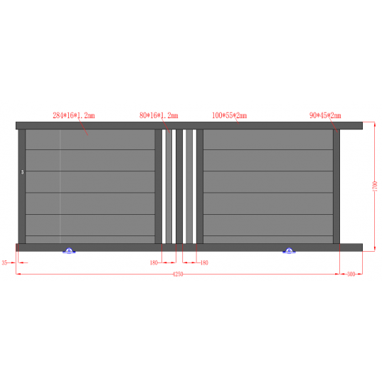 ! La largeur indiquée est la dimension de passage entre piliers et non la largeur totale du portail