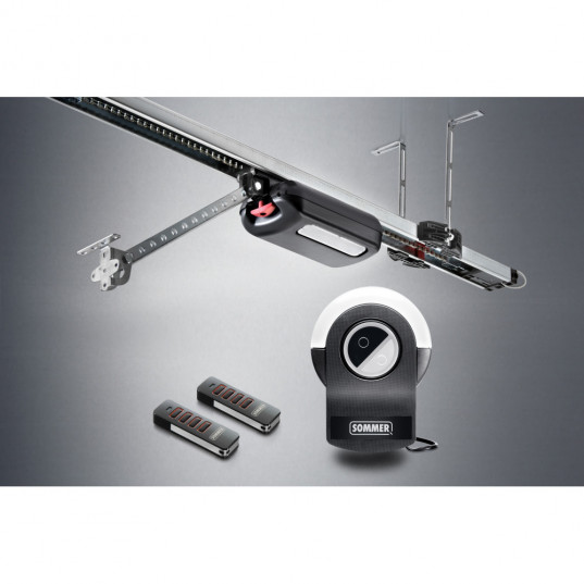* Chariot avec récepteur radio intégré (MF 868,95 MHz SOMloq2, 40 emplacements de mémoire) * Éclairage à LED dans le chariot avec 3 LED * Rail de roulement en trois parties, chariot, suspension plafonnière, fixation contre la chute, bras de poussée, équerre de ferrure de porte et matériel de fixation