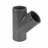 Raccord PVC 45° en Y diamètre 50 mm. Résiste à la pression de l'eau. A assembler à la colle PVC.