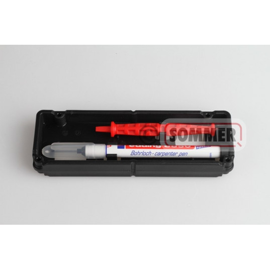 Une petite aide utile au montage de la porte de garage et au contrôle du fonctionnement * Une petite aide utile au montage de la porte de garage et au contrôle du fonctionnement : - CHECKy en position verticale (50 mm) : contrôle de fonctionnement de la mise hors circuit à 50 mm. - CHECKy plat (20 mm) : contrôle de fonctionnement masquage de la mise hors circuit à moins de 50 mm - Repérage des trous de perçage pour la fixation au linteau/plafond et la commande murale SOMMER pro+ * Y compris marqueur de trous de perçage * Y compris outil de réglage des commutateurs DIP et actionnement des borniers à ressort
