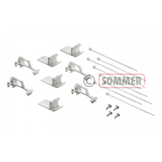 * Étriers de câble pour la fixation des câbles directement sur l'encadrement de porte et le faux-linteau * Pour l'encadrement et le faux-linteau du système HOME de DOCO * Y compris 4× étriers de câble pour l'encadrement de porte, 4× étriers de câble pour linteau de porte, 8× serre-câbles et 4× vis