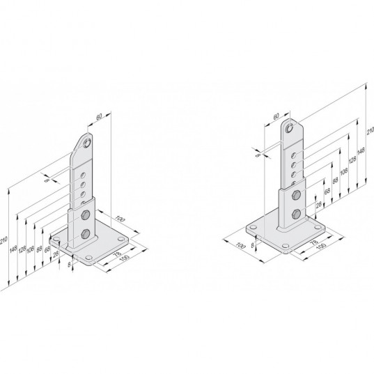Pour portail incliné (pente max. 10%, poids max. du battant 120kg, largeur max. du battant 2,5m) * Pour portail incliné (pente max.10%, poids max.du battant 120 kg, largeur max. du battant 2,5 m) * Réglage variable ; galvanisé