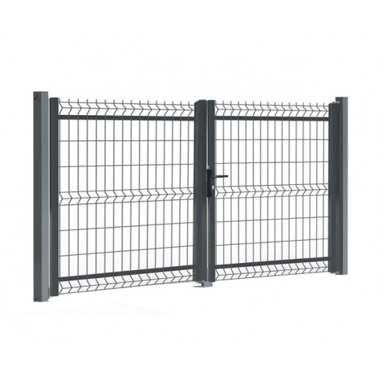 • Maille 200x50 entre fils et 55mm entraxe, soudée en applique sur traverse et entre montants.