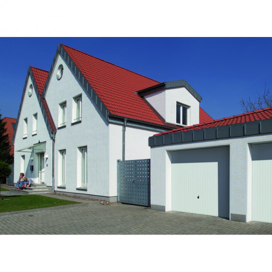Le tablier de porte est en profil tubulaire avec raidisseurs intermédiaires et rempli par une tôle nervurée