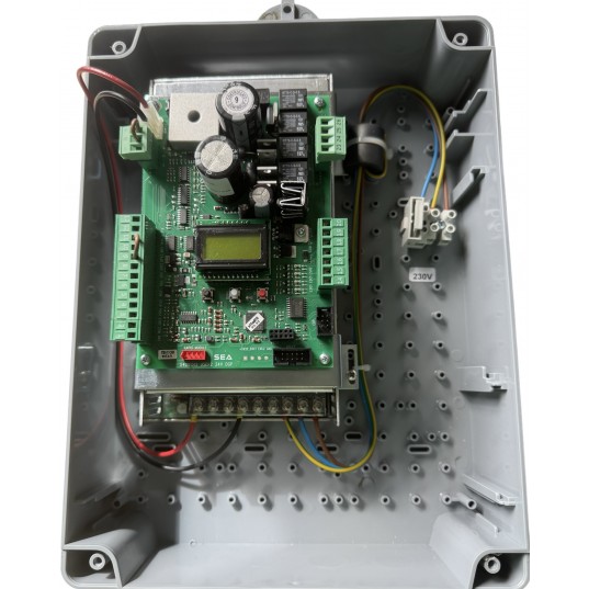 Cette armoire électronique de SEA est indiquée pour commander jusqu’à 2 opérateurs à battants de 24V avec ou sans fins de course électronique. Grâce à ce modèle, il vous est possible de réguler la vitesse des moteurs, la sensibilité ampèremetrique ou encore le temps de pause.