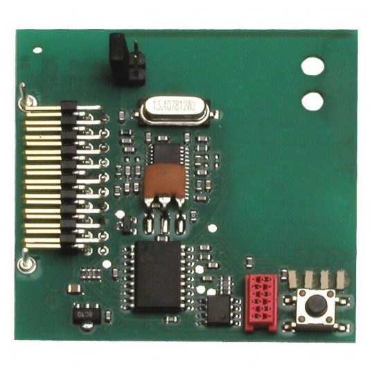* Convient aux automatismes pour portails à battants et coulissants SOMMER * Mémoire : 112 commandes radio programmables * Antenne : intégrée ; possibilité de raccorder une antenne externe en option (# 7004) * Alimentation électrique : 8-18 V c.c. * Sortie de commande : Open Collector * Raccordement : Barrette à 20 broches * Dimensions : 54×54×16 mm * Mode de fonctionnement : Mode impulsion (Tip) : le relais est activé tant qu'il y a un signal radio