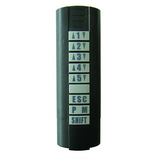 Avec touches numérotées et flèches de direction * Portée : env. 25 m (selon l'environnement) * Batterie : 3 V, type CR 123 A * Dimensions : 147×44×28,50 mm * Plage de températures : -20°C à +55°C * Résiste aux intempéries ; pose en extérieur et en intérieur
